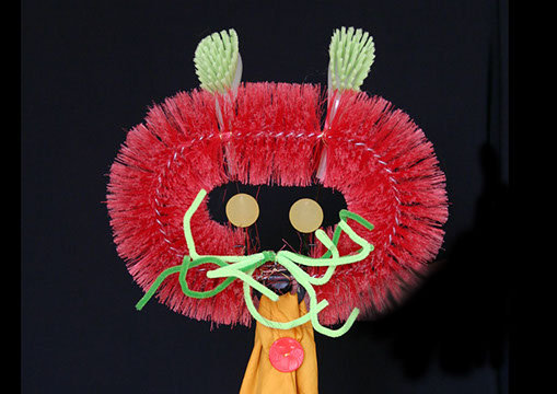 Type de marionnettes: Marionnettes d’objets. Les personnages sont pour la plupart représentés et sculptés dans des objets ménagers (plumeau, brosse à dents, etc.). Humour et caricature sont les fils rouges de tous les spectacles du Rikiko.