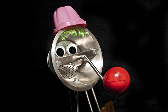 Marionnettes d’objets: Les personnages sont pour la plupart représentés et sculptés dans des objets ménagers (plumeau, brosse à dents, etc.). Humour et caricature sont les fils rouges de tous les spectacles du Rikiko.